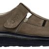 Sandals in nubuck with velcro closure on the instep. Sole with a strong cushioning effect provides optimum relief for your back muscles and joints. Suitable for people with a sensitive back and with feet and joints exposed to daily stress.
