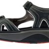 Sporty Sandal with upper made of leather. Has a soft padded neoprene lining and adjustable straps on the heel, instep and forefoot. Has normal width of a footbed. Curve sole provides roll movement that forces the body to balance and activates muscles in the back and the feet. Suits people that wish to train a good posture and vigorous exercise. This shoe is suitable as working shoe.