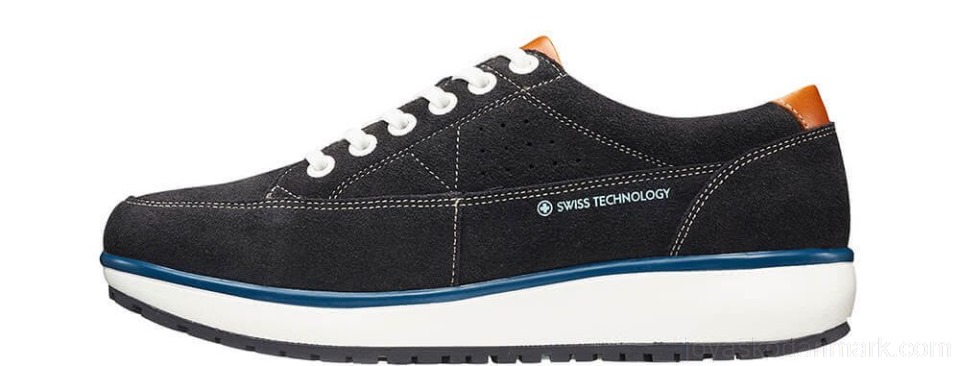 Sneakers in suede with decorative contrast stitching and reflective patches on the heel and the tongue. Has a front lacing and soft textile lining. Sole with a strong cushioning effect provides optimum relief for your back muscles and joints. Suitable for people with a sensitive back and with feet and joints exposed to daily stress.